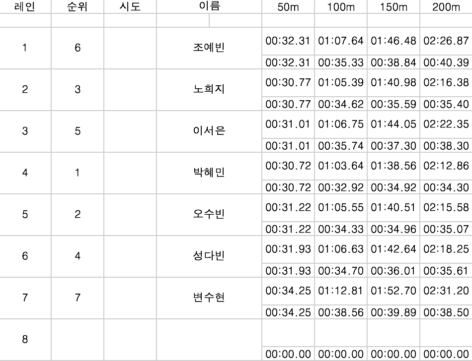 여자 일반 자유 200m